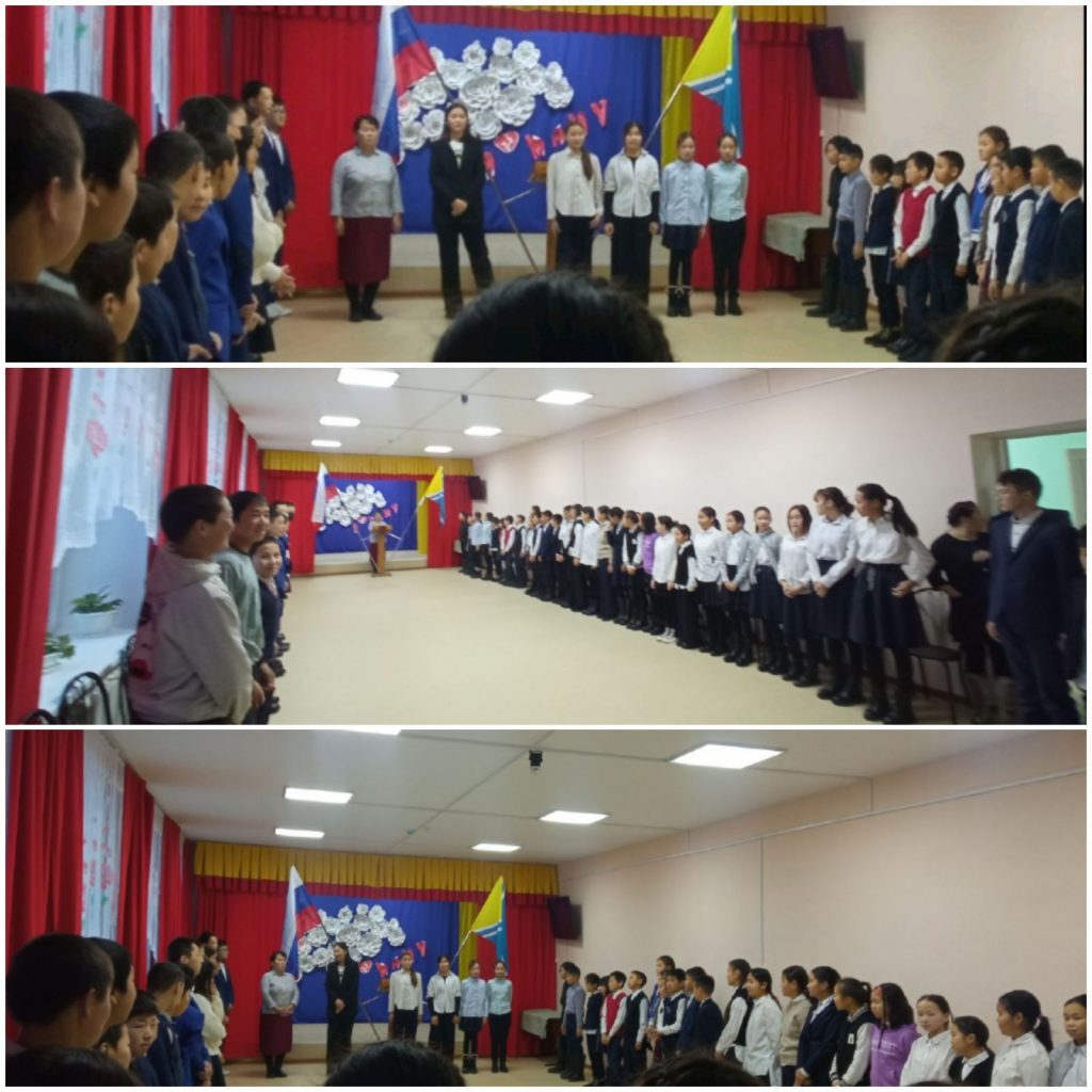 Понедельник, 11 ноября, учебная неделя началась с патриотической традиции поднятия флагов РФ и РТ, прослушивания гимнов РФ и РТ.