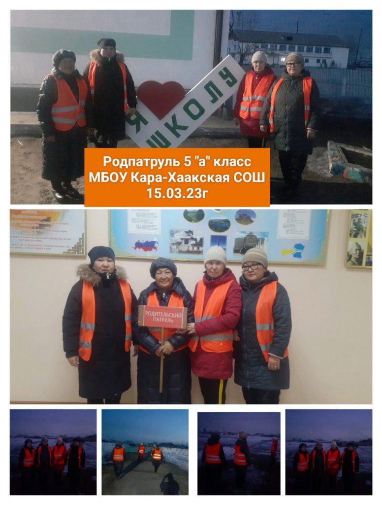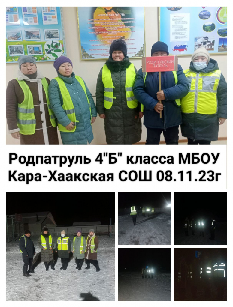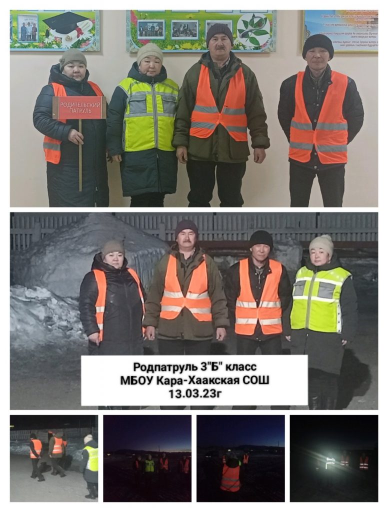 С целью профилактики детского дорожно-транспортного травматизма, привлечения внимания общественности к проблеме обеспечения безопасности дорожного движения детей-пешеходов с точки зрения сезонных изменений погод, профилактики правонарушений среди подростков и охраны общественного порядка сумона ежедневно по установленному графику выходит родительский патруль МБОУ Кара-Хаакской СОШ. Огромная благодарность нашим родителям, которые поддерживают проект #Лучшийродительскийпатруль #Наши_родители_молодцы!