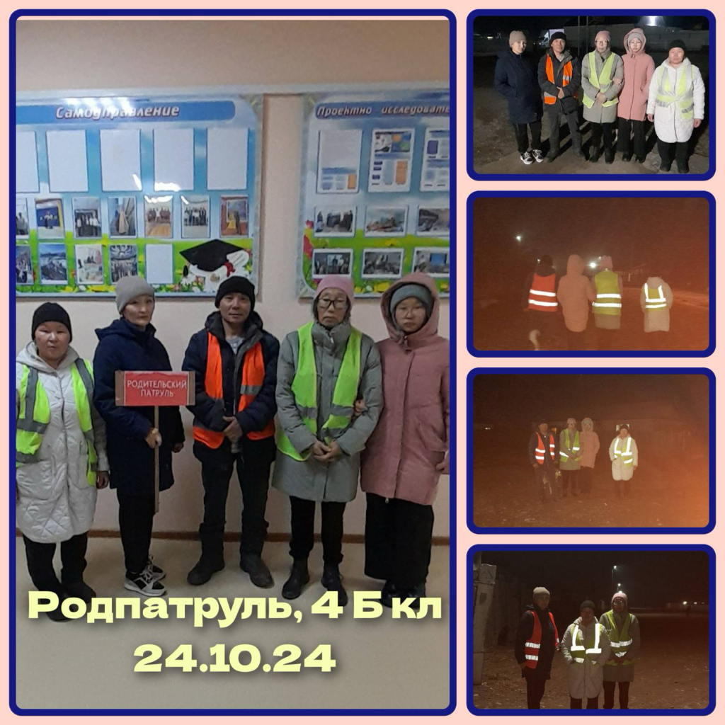 24.10.2024г. На родительский патруль вышли родители 4б класса. Во время патруля не было грубых нарушений. Учащихся не встретили. В селе обстановка спокойная, тихая.