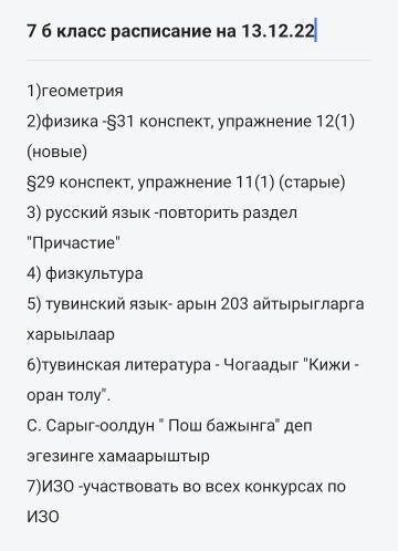 | 1 | Родной язык (тувинский) | Домактын ийиги черге кежигуннерин катаптаар. Мергежилге 99. |