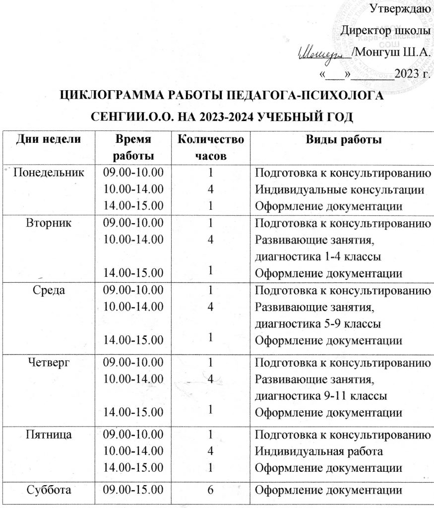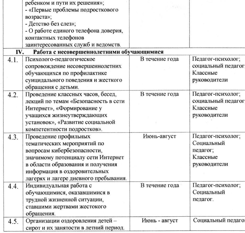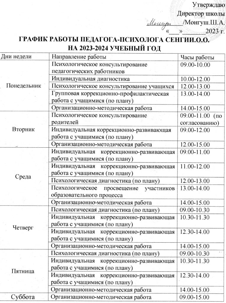 План работы Педагога-Психолога на 2023-2024 уч.год