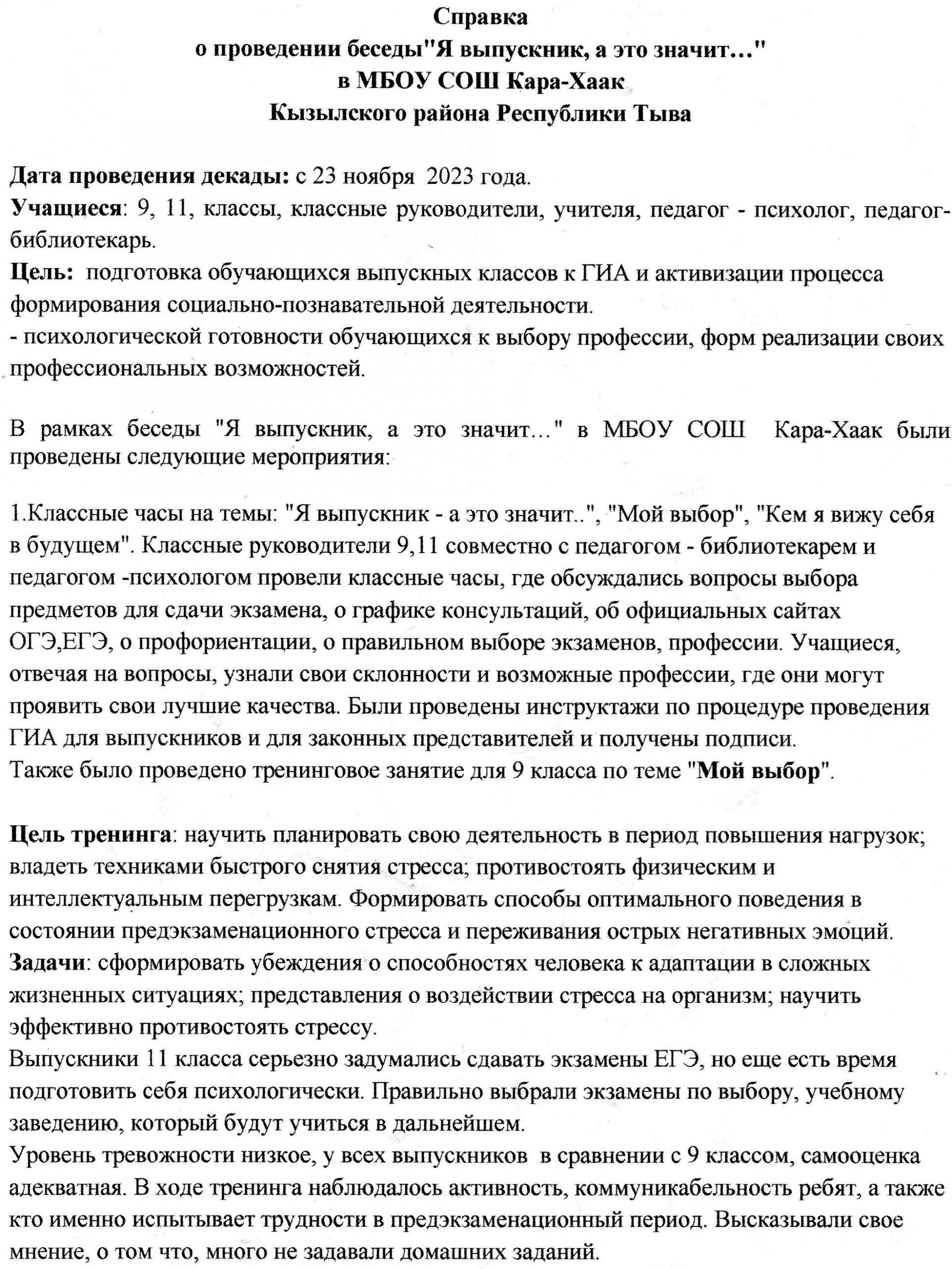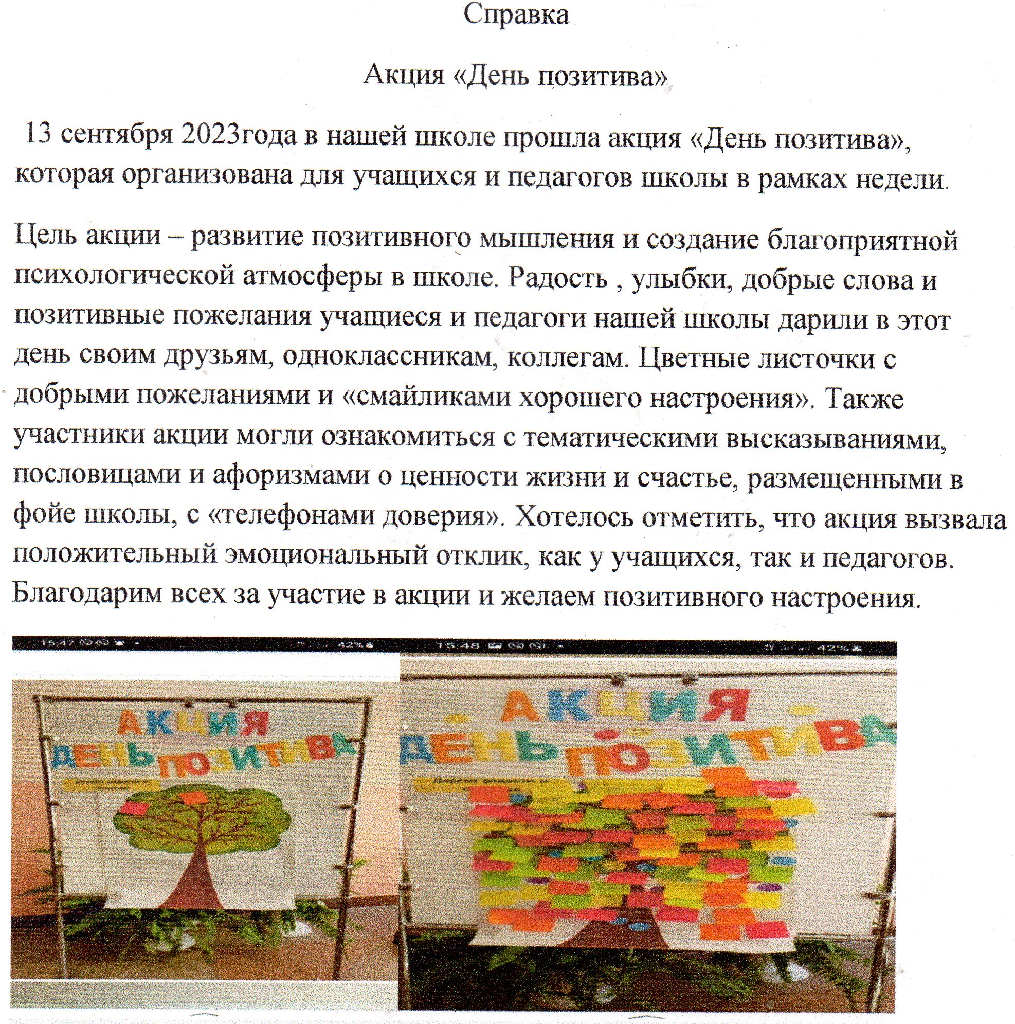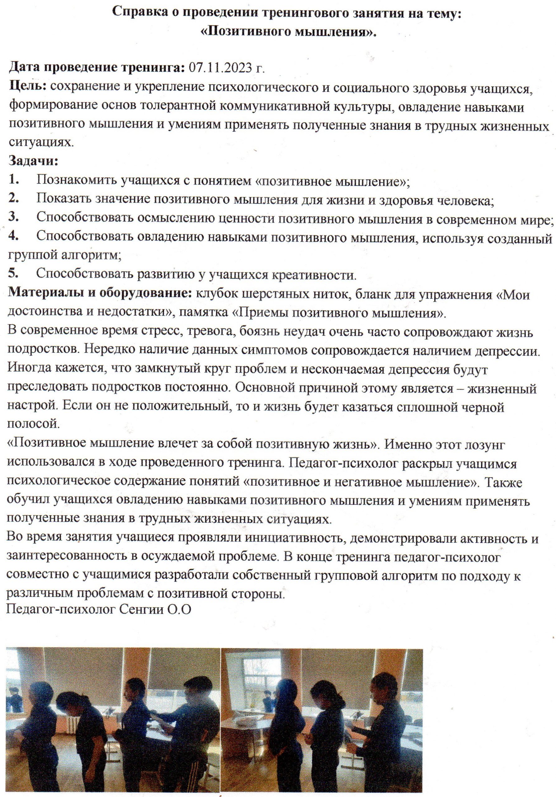 Справка о проведение тренингового занятия на тему: «Позитивного мышления»