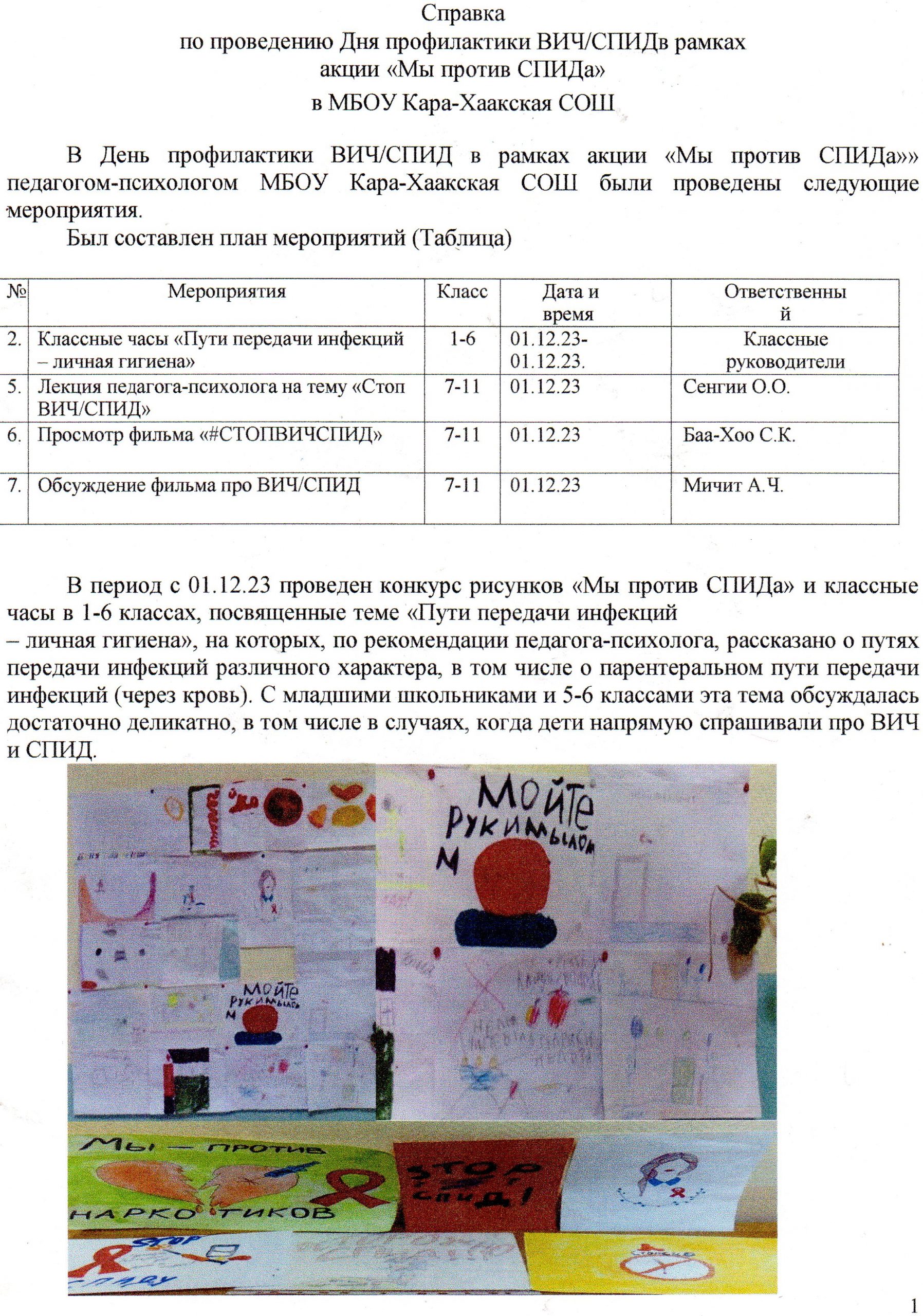Справка по проведению Дня профилактики ВИЧ/СПИД в рамках акции «Мы против СПИДа»